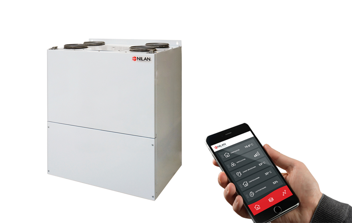 Nilan has developed an App with great features where the user can control the ventilation and heat pump directly from the mobile phone. The App is intuitive, easy and safe to use, and allows the user to e.g. set the room temperature. More ventilation units can be connected using the same App to control the indoor climate in e.g. both the dwelling and the holiday home. More users can be connected the same App.