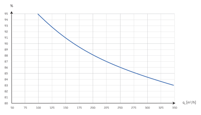 Temperature efficiencyTemperature efficiency for units with counterflow heat exchanger according to EN13141-7 (dry). |