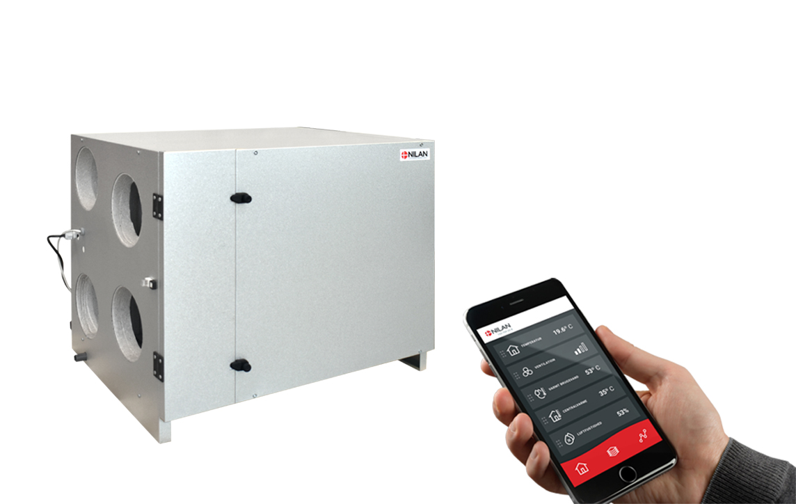 Nilan has developed an App with great features where the user can control the ventilation and heat pump directly from the mobile phone. The App is intuitive, easy and safe to use, and allows the user to e.g. set the room temperature. More ventilation units can be connected using the same App to control the indoor climate in e.g. both the dwelling and the holiday home. More users can be connected the same App. When purchasing a Nilan gateway, the user can access the unit via the Nilan App. Get more information on the Nilan App