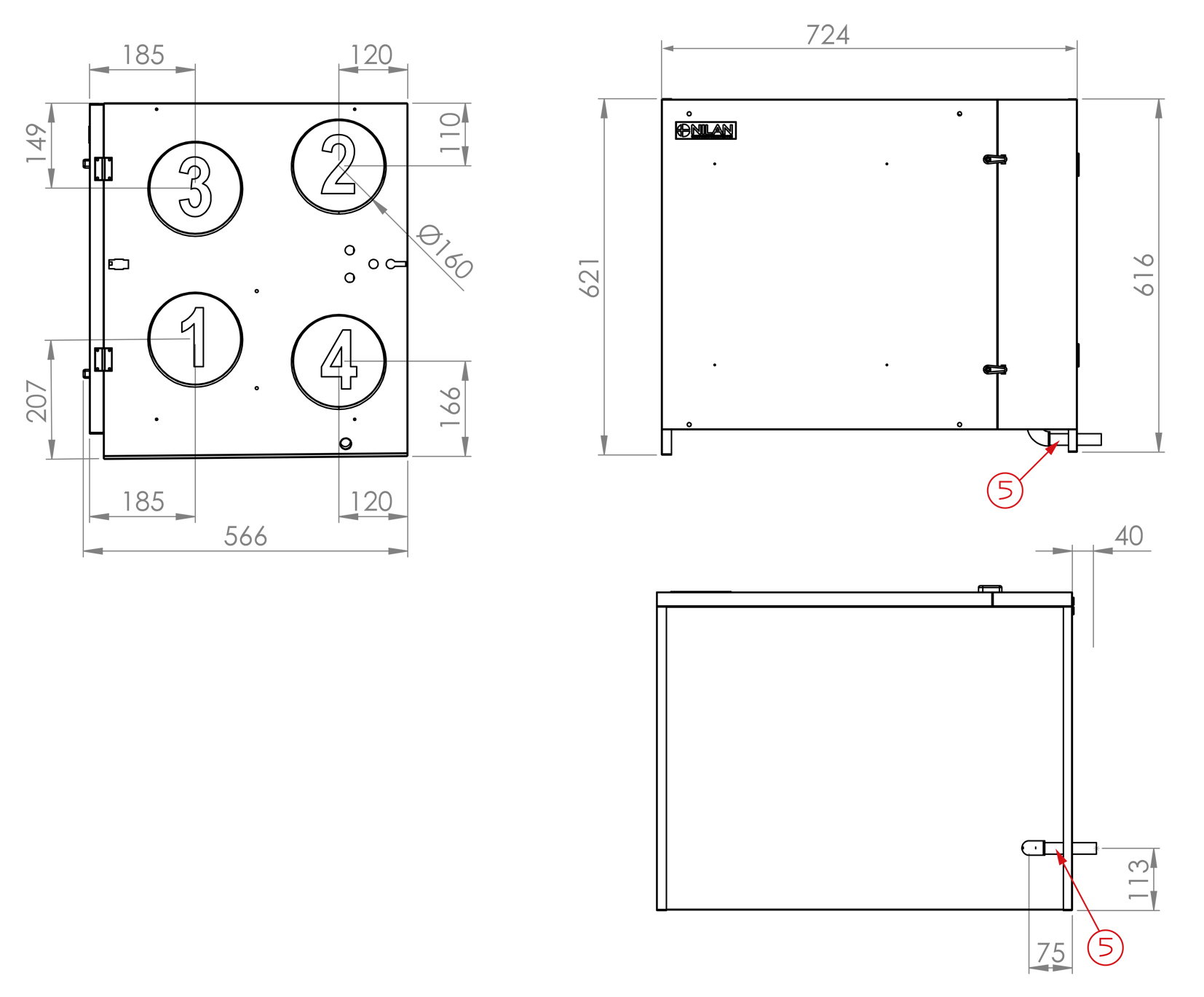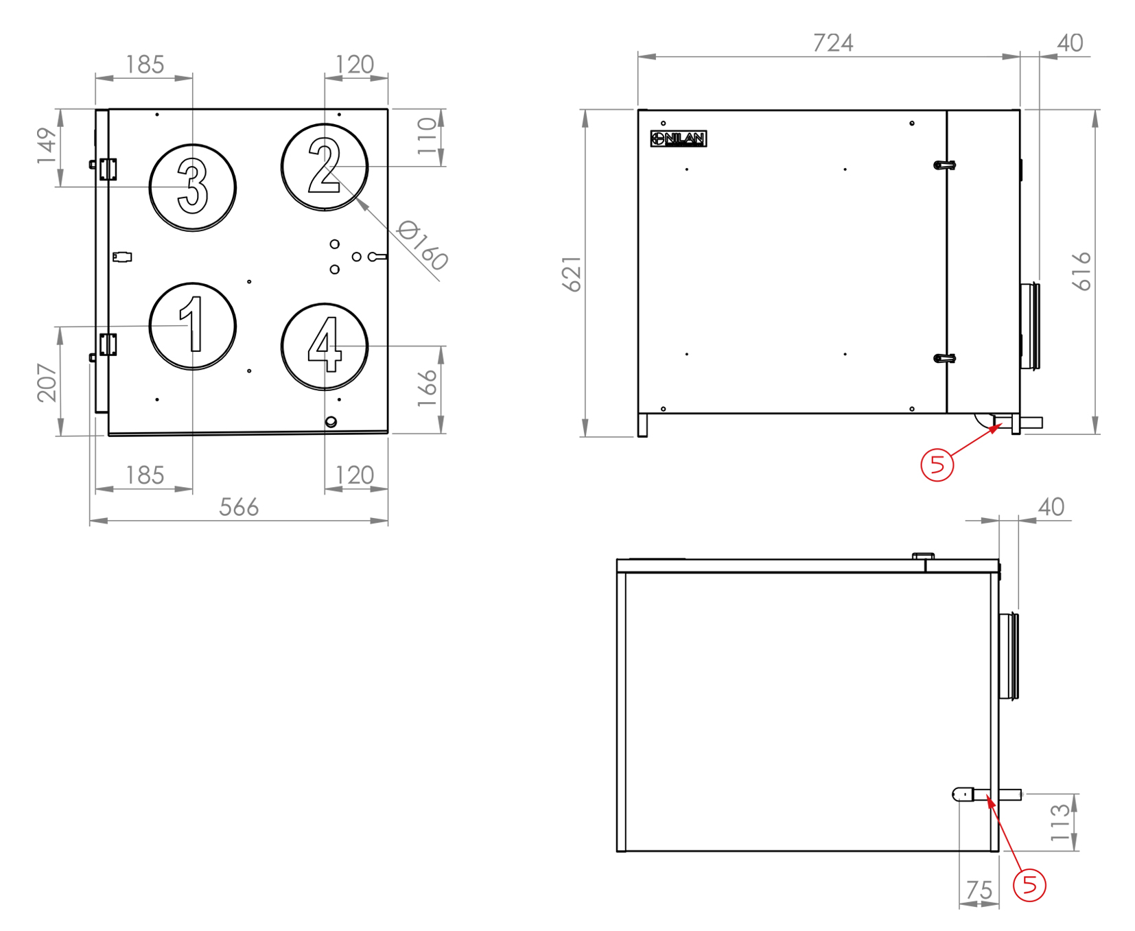 CTS400 is a simple and intuitive control panel with a complex control system that contains many useful functions. On the control panel you can set the fan speed level, turn the unit on and off and see potential alarms. When installed in rental properties, hotels etc., you can lock the panel so tenants cannot turn off the unit and/or alter the fan speed level. The many functions of the control system enable you to connect, for instance, after-heating elements and a CO2 or VOC sensor. The control system includes, as standard, user selection programs, an intelligent humidity control system and an integral fire automation system. CTS400 has open Modbus communication that enables connection to external CTS systems. The Modbus connection can also be connected to a Nilan gateway cloud solution that allows you to control and monitor the unit via a smartphone APP solution.