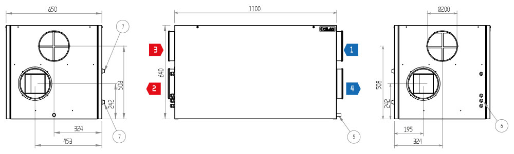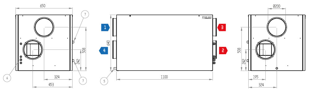 You can download AutoCad or Revit drawings with BIM data on several Nilan ventilation and heat pump solutions - the list is constantly being expanded. Click here to get more about BIM data on Nilan units Dimensional drawing Comfort 450 (Right version):