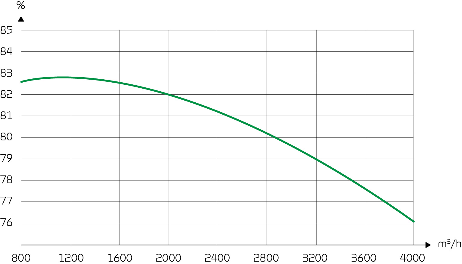 Temperature efficiencyTemperture efficiendy for rotatry heat exchanger according to EN308 (dry). |