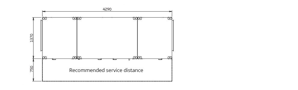 ATTENTION! Good clearance in front of the unit is recommended. When positioning the unit, you should always consider future services and maintenance. It must be easy to replace filters and it must be possible to replace fans or other components. There must be space for easy cleaning of the unit. When cleaning the unit, water may run out of cleaning and condensation drains. There must therefore be space for mounting water locks at condensate drains as well as any. The unit must be level to enable proper drainage from the condensate tray.