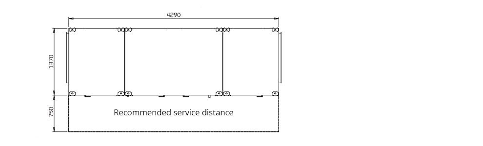 ATTENTION! Good clearance in front of the unit is recommended. When positioning the unit, you should always consider future services and maintenance. It must be easy to replace filters and it must be possible to replace fans or other components. There must be space for easy cleaning of the unit. When cleaning the unit, water may run out of cleaning and condensation drains. There must therefore be space for mounting water locks at condensate drains as well as any. The unit must be level to enable proper drainage from the condensate tray.