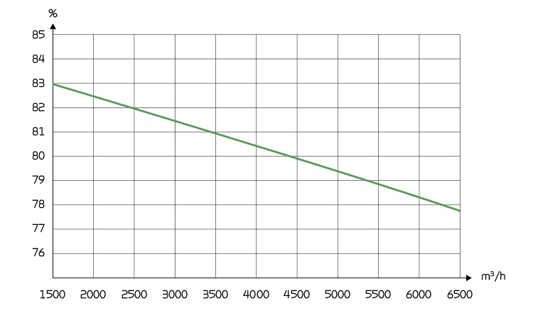 Temperature efficiencyTemperture efficiendy for rotatry heat exchanger according to EN308 (dry). |
